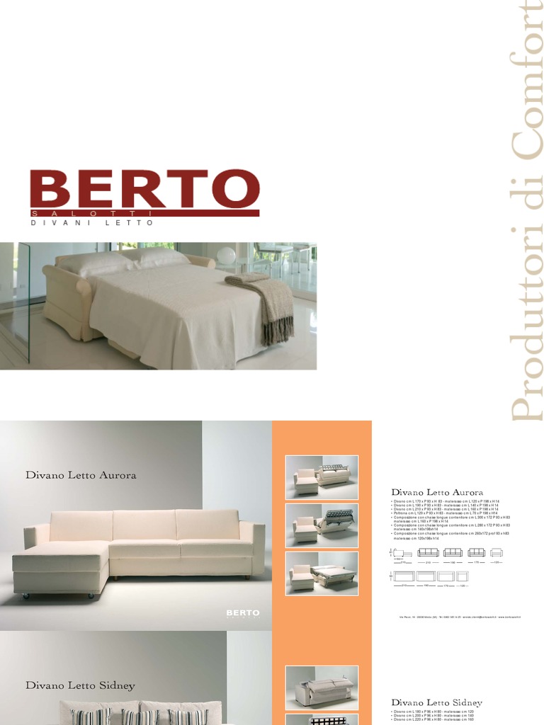 Scopri i nostri prodotti. Berto salotti è un azienda artigiana specializzata nella produzione di divani su misura per le zone living e notte. Una realtà innovativa e dinamica che ha l obiettivo di rendere accessibili produzioni artigiane di qualità e su misura attraverso una distribuzione moderna.
